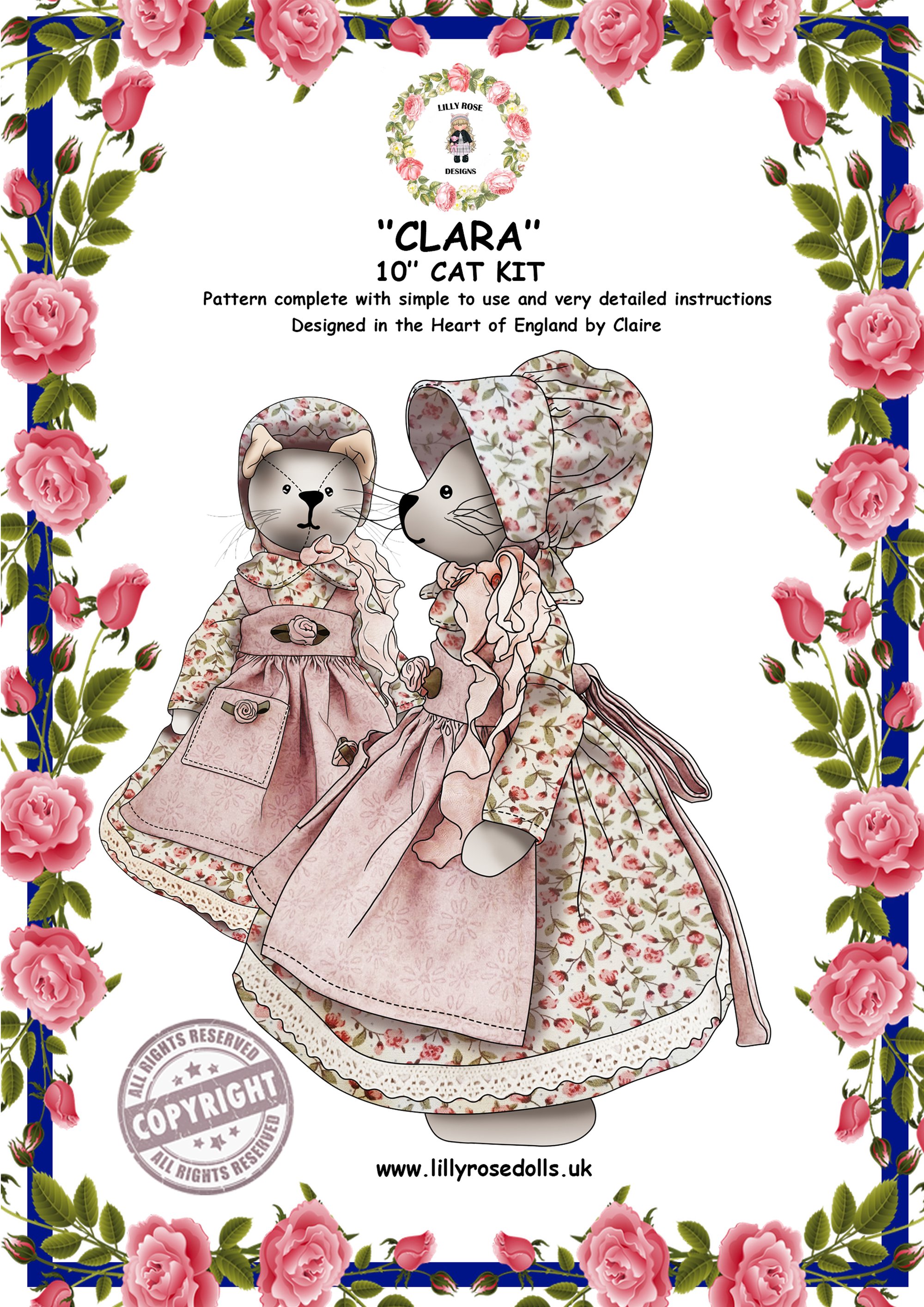 This full size pattern includes full easy to follow instructions to make Clara and all her clothes, picture diagrams and written instructions will take you through each process, designed, tried and tested by myself, so you can create a stunningly unique Clara Cat to add to your collection or a wonderful gift.